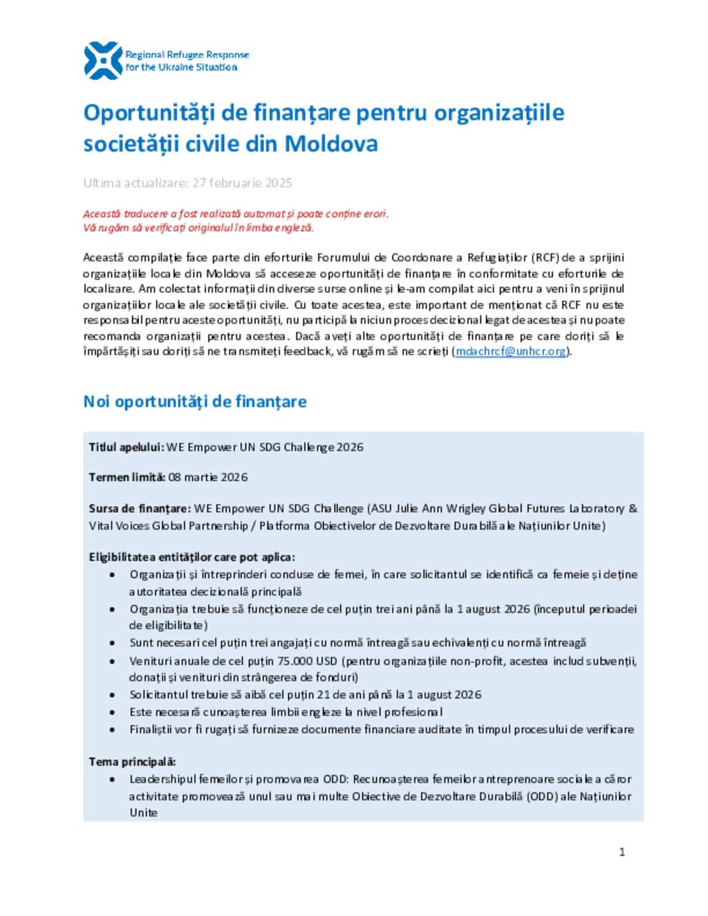 Ukraine Situation - Moldova: Funding Opportunities for Local CSOs in Moldova (March 2026) (RO)