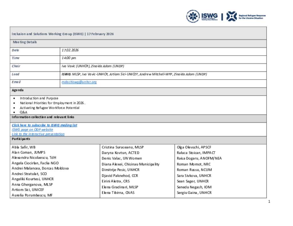 Ukraine situation: Moldova: Inclusion and Solutions Working Group Meeting Minutes (17 February 2026)