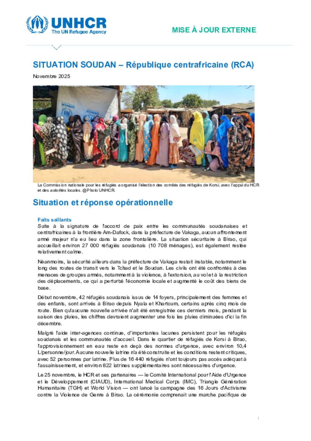 Situation Soudan - Mise à jour Externe - HCR RCA -Novembre 2025