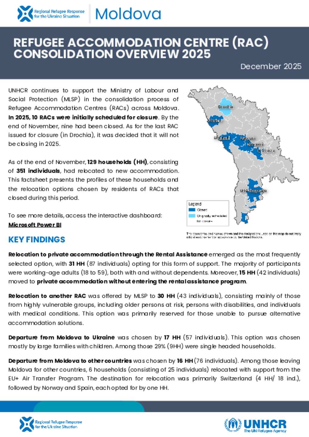 Ukraine Situation: Moldova Refugee Accommodation Centres (RACs) Consolidation Factsheet (Dec 2025)