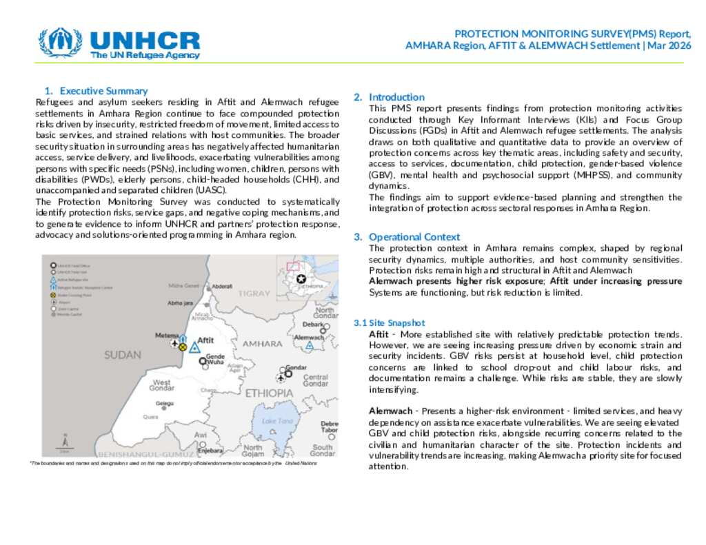 UNHCR Ethiopia | PMS Report Amhara Region Aftit and Alemwach Settlements | February 2026
