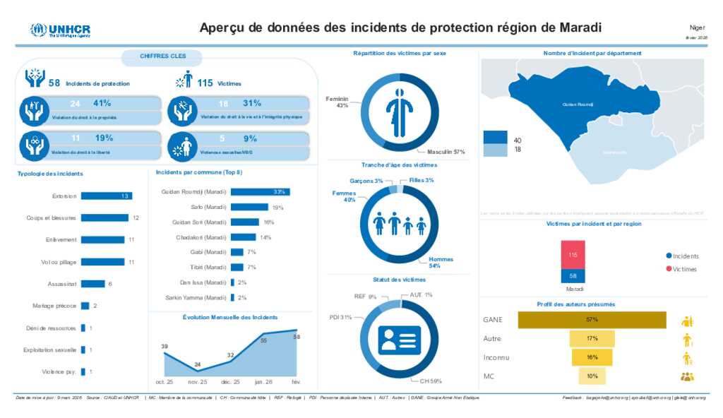 UNHCR Niger - Aperçu de données des incidents de protection de Maradi - Fevrier 2026