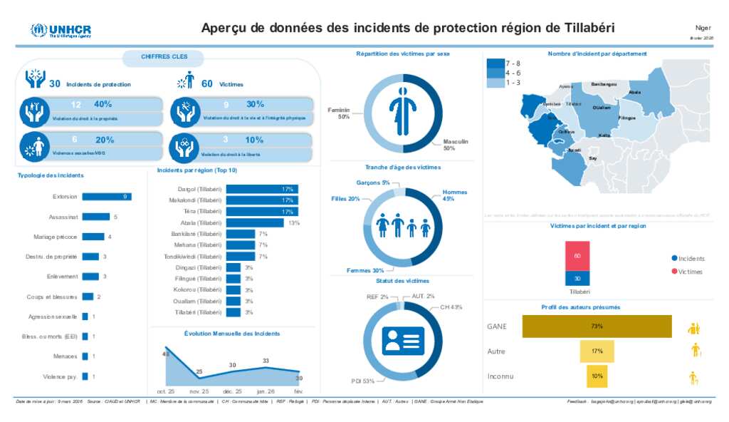 UNHCR Niger - Aperçu de données des incidents de protection de Tillaberi - Fevrier 2026