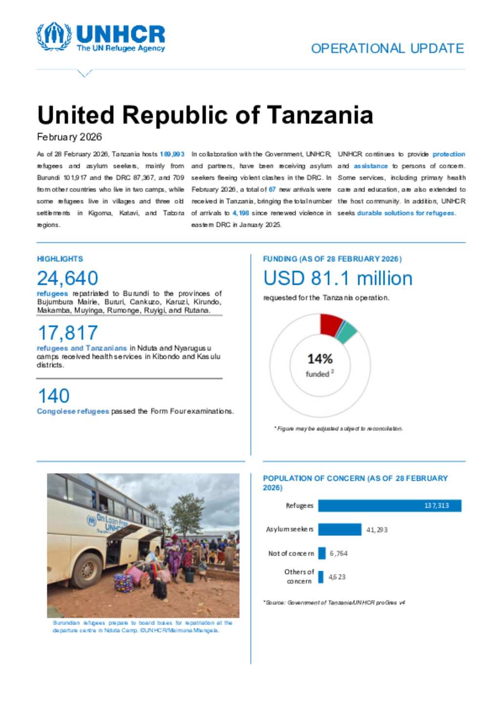 UNHCR Tanzania Operational Update - February 2026