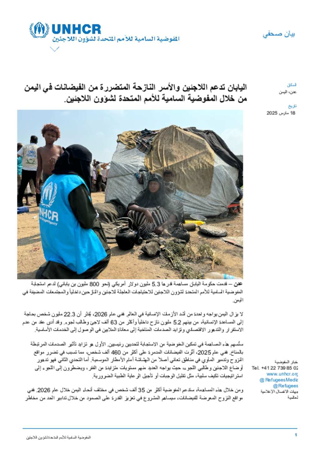 UNHCR Yemen Press Release_Japan supports refugees and flood-affected displaced families in Yemen through UNHCR