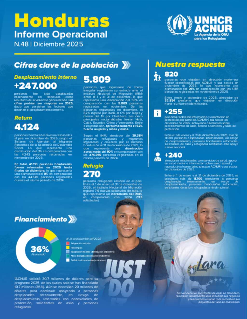 Reporte operacional de la oficina de ACNUR en Honduras que corresponde a diciembre de 2025.