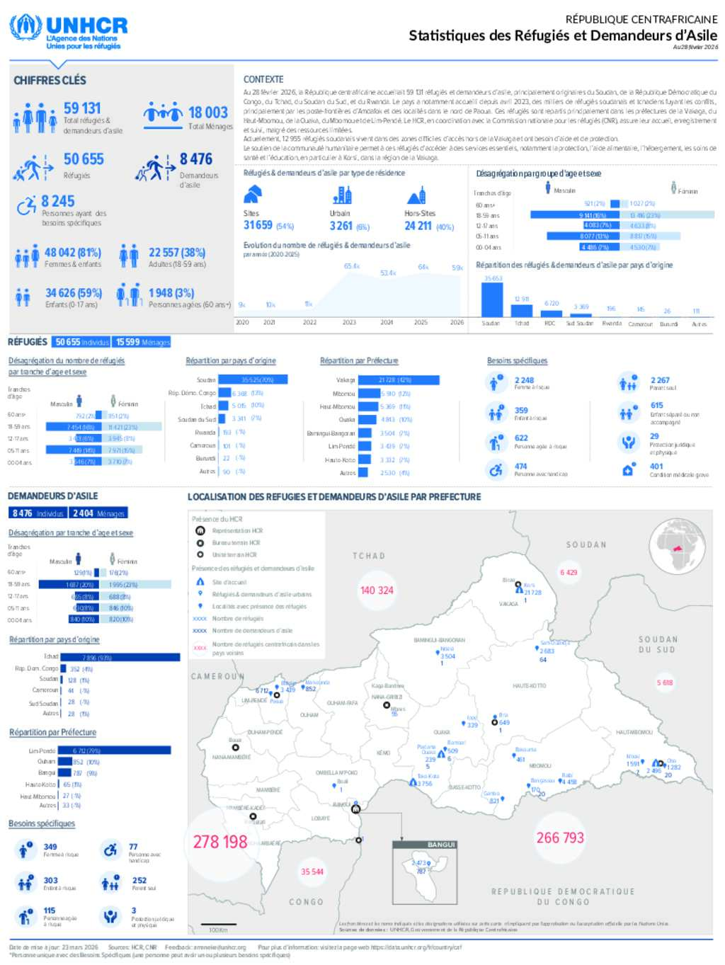 RCA Statistiques des réfugiés et demandeurs d'asile - 28 Fevrier 2026