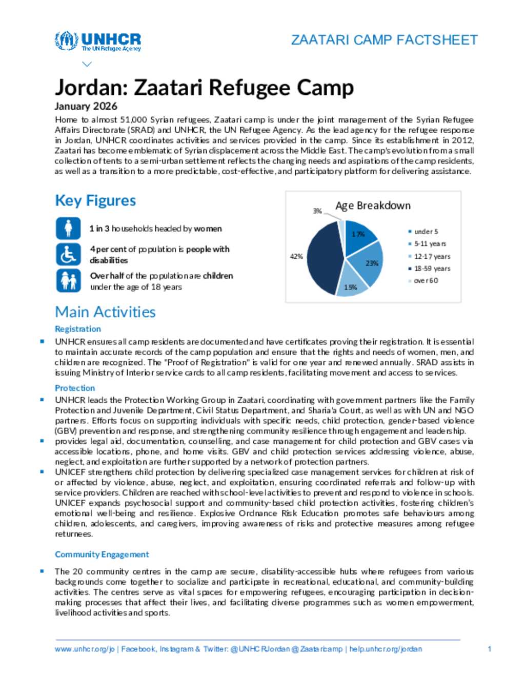 Jordan: Zaatari Refugee Camp Factsheet (January 2026)
