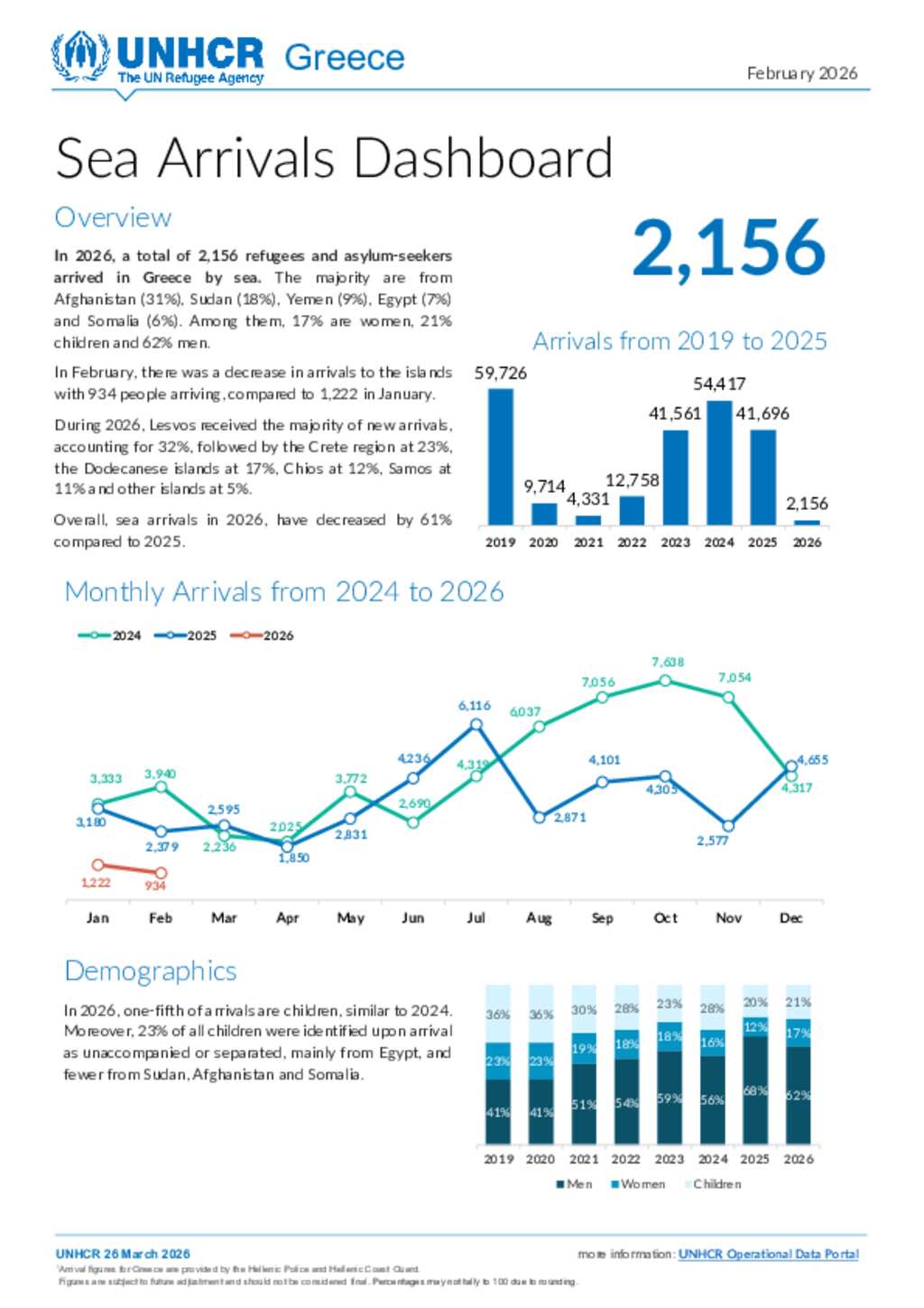 Greece Sea arrivals Dashboard - February 2026
