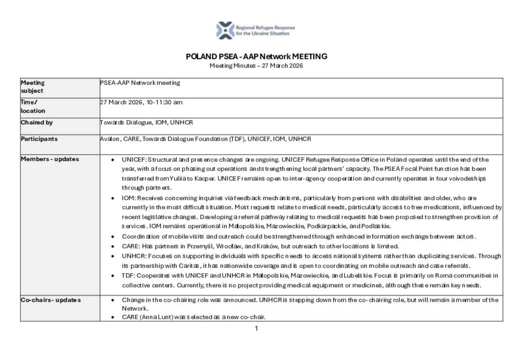 Poland: PSEA - AAP Network meeting minutes (27 March 2025)