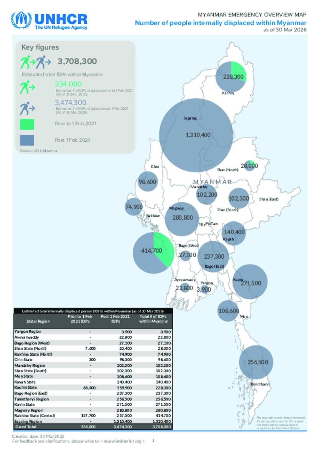 Myanmar UNHCR Displacement Overview 30 Mar 2026