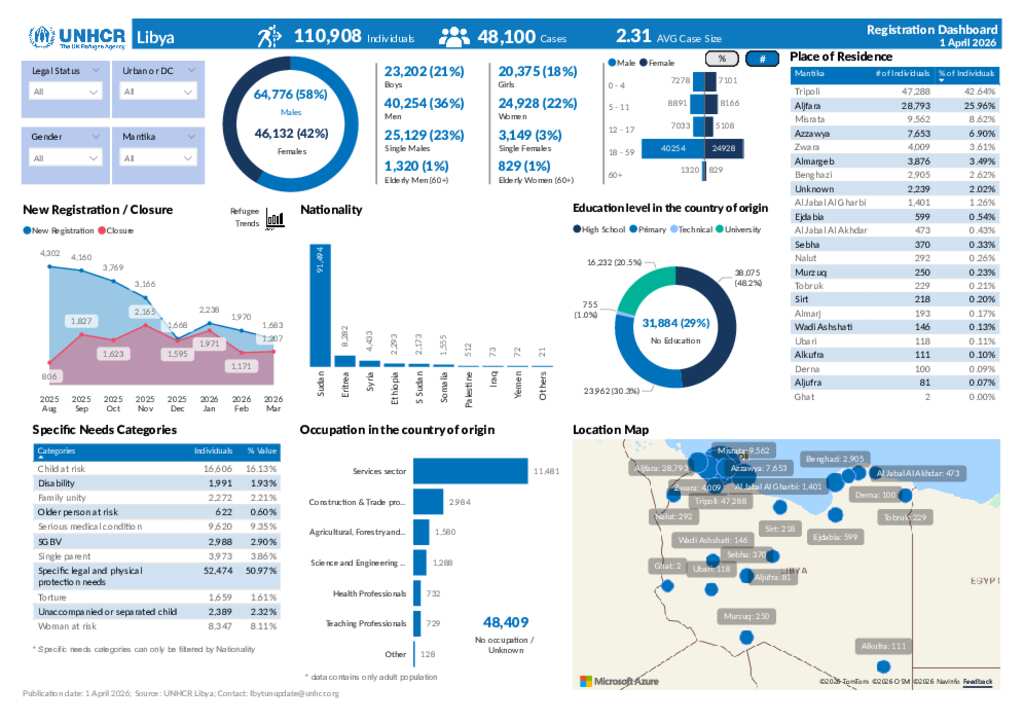 Refugees and asylum-seekers registered by UNHCR in Libya as of 31 March 2026