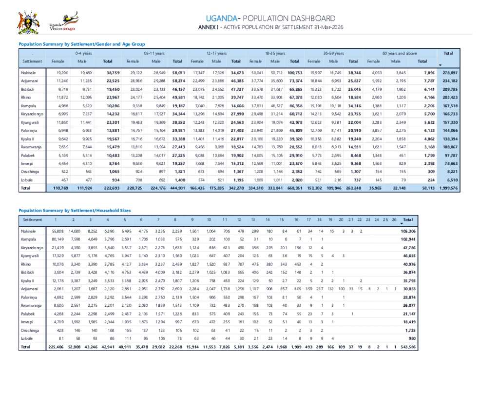 Uganda - Refugee Statistics March 2026 - Active Population by Settlement