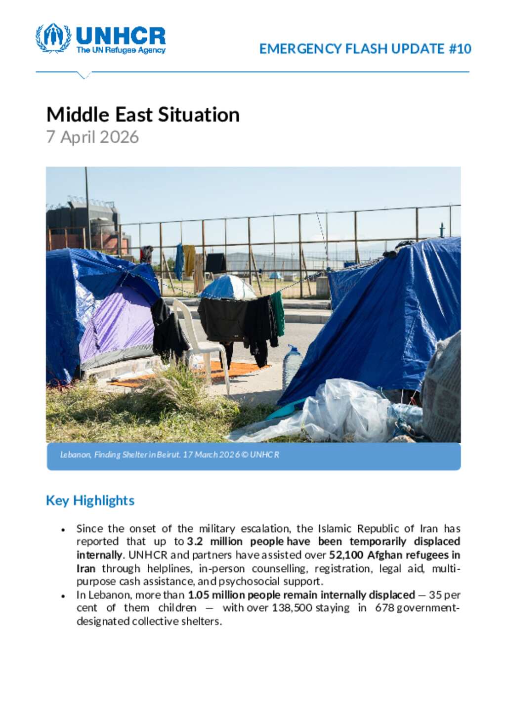 UNHCR Middle East Situation: Emergency Flash Update #10 as of 7 April 2026