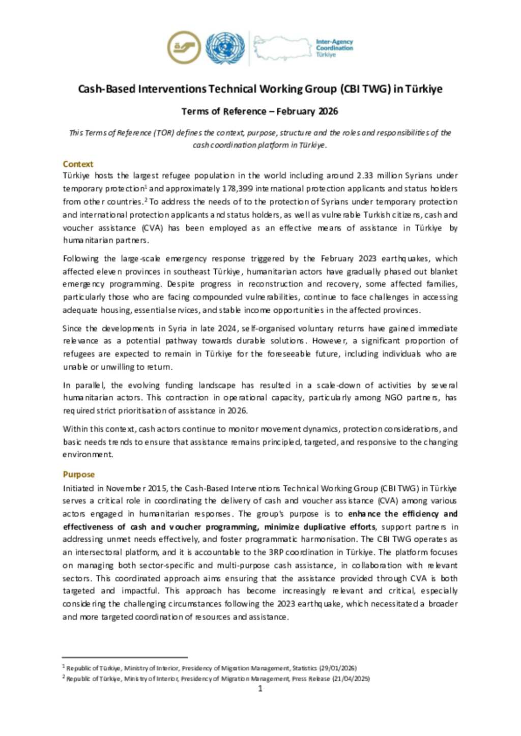 Türkiye: Cash-Based Interventions Technical Working Group Terms of Reference - 2026