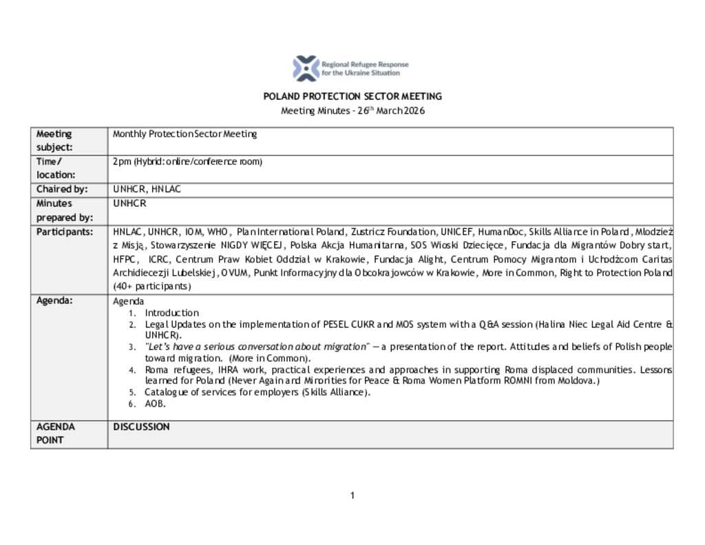 Poland: Protection Sector meeting - meeting minutes (26 March 2026)