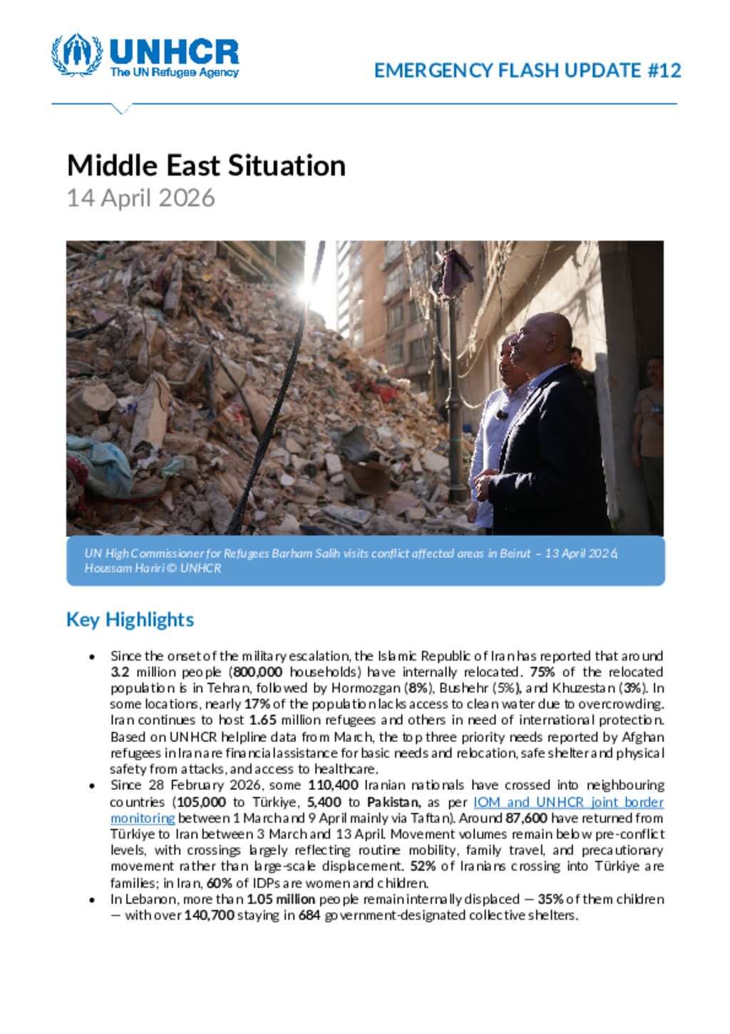 UNHCR Middle East Situation: Emergency Flash Update #12 as of 14 April 2026