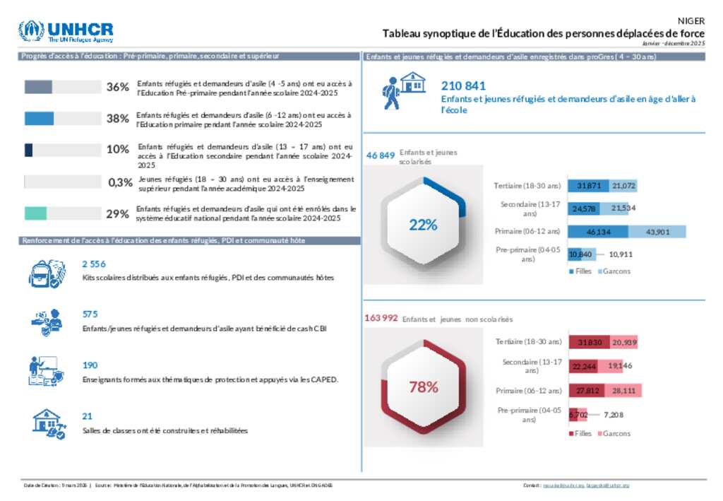 UNHCR Niger - Dashboard Education - Année 2025