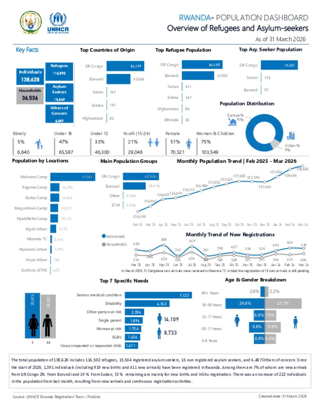 UNHCR Rwanda - Population Statistics Dashboard - 31 March 2026