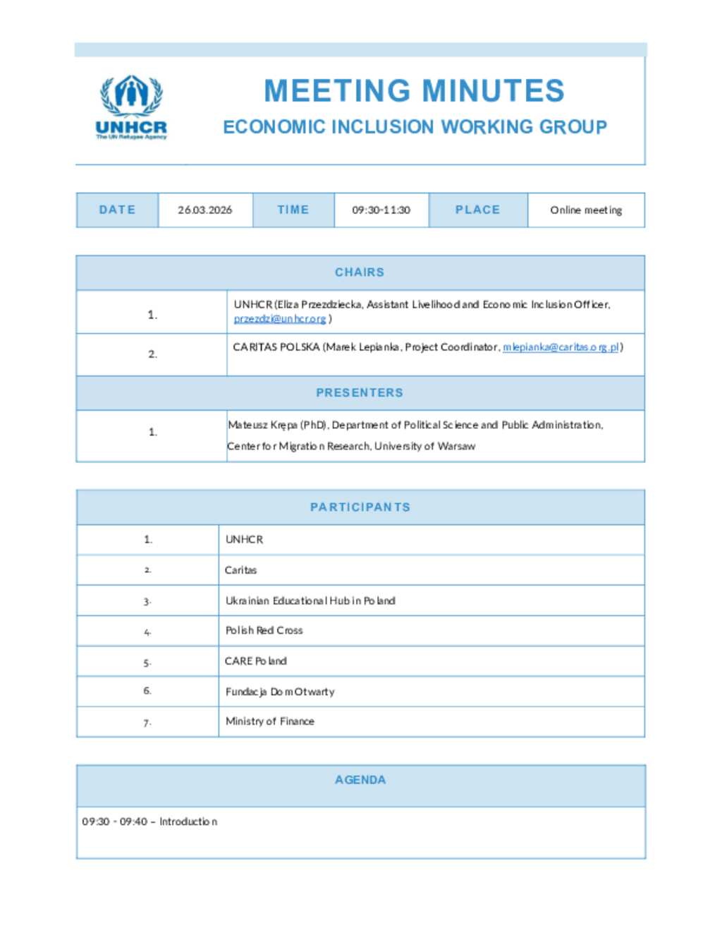 Poland: Economic Inclusion Working Group Meeting Minutes - 26 March 2026