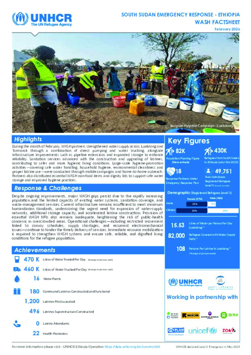 UNHCR Ethiopia South Sudan Emergency Thematic Factsheet - WASH as of 28 February 2026