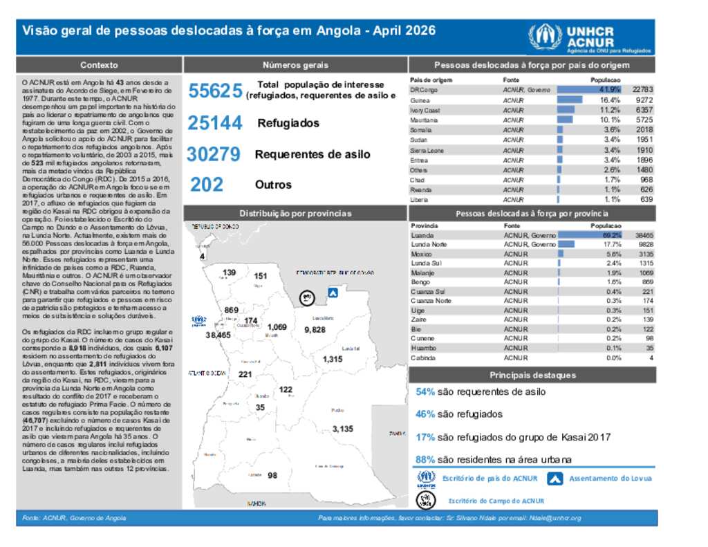 Angola Population of Concern Snapshot - April 2026 (Portuguese)