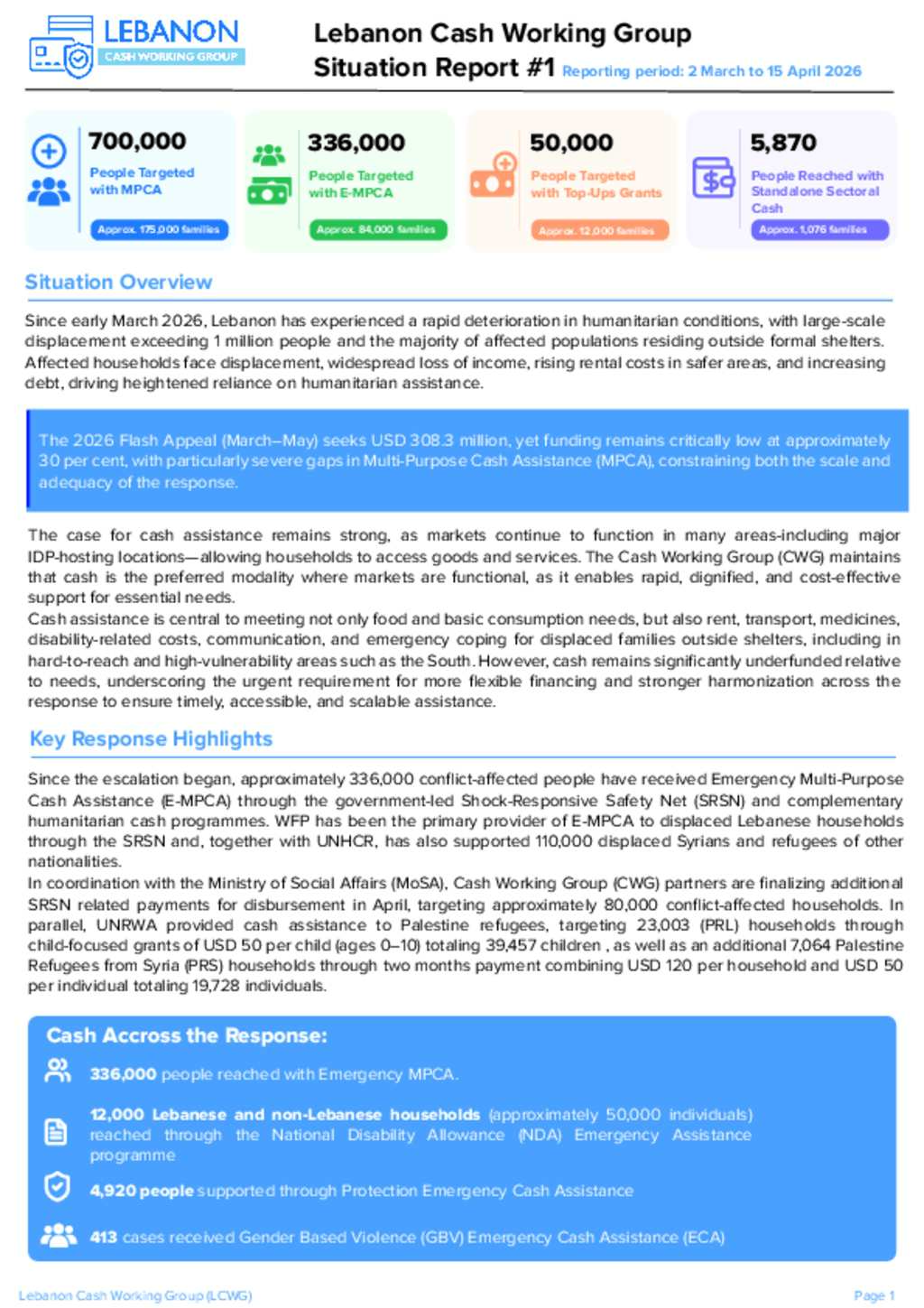 Cash Working Group Emergency Situation Report #1 2026