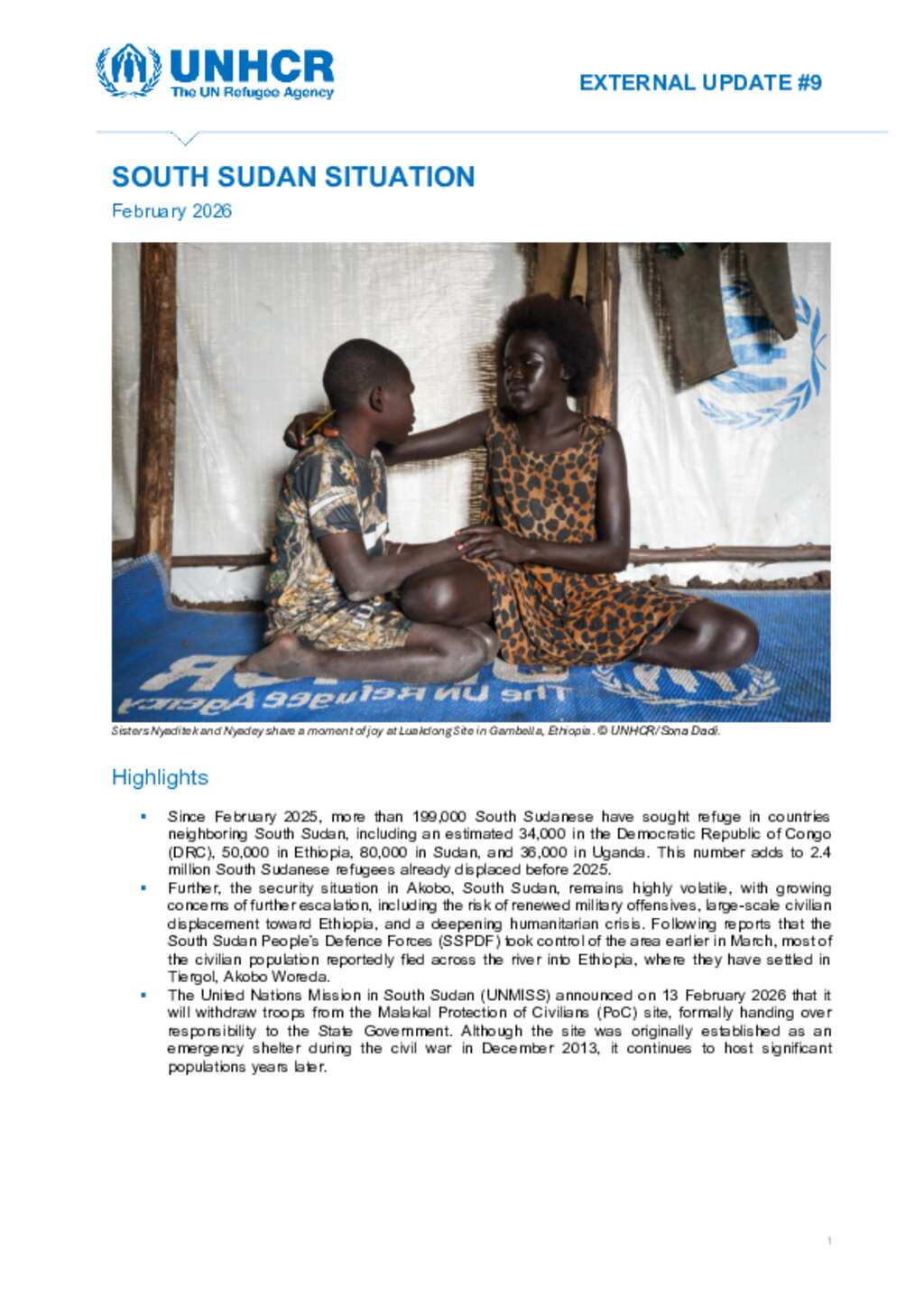 South Sudan Situation: UNHCR Monthly External Update #9 - February 2026