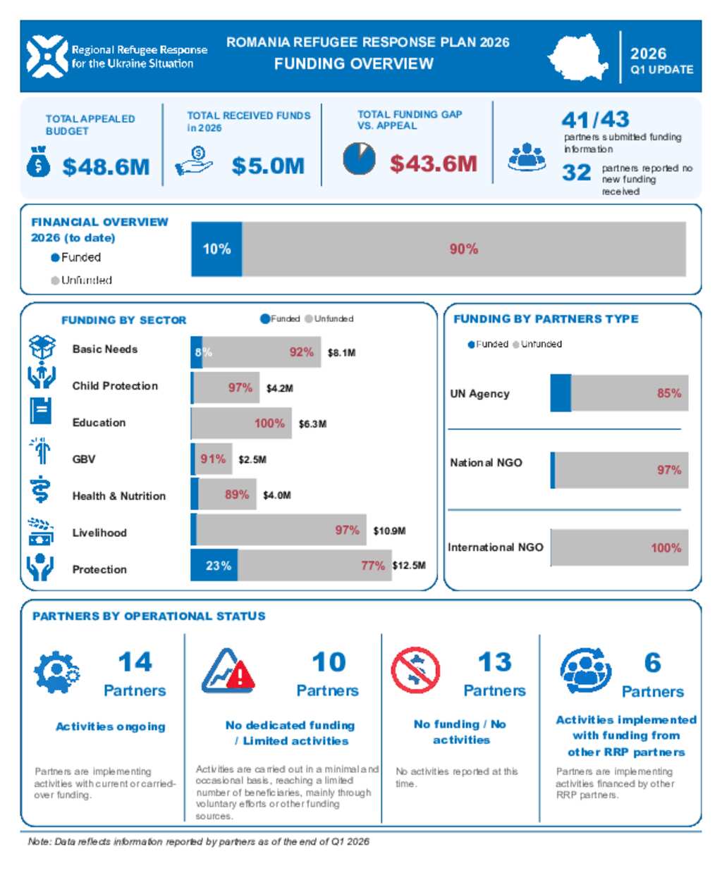An at-a-glance look at the Romania 2026 RRP Q1 funding situation.