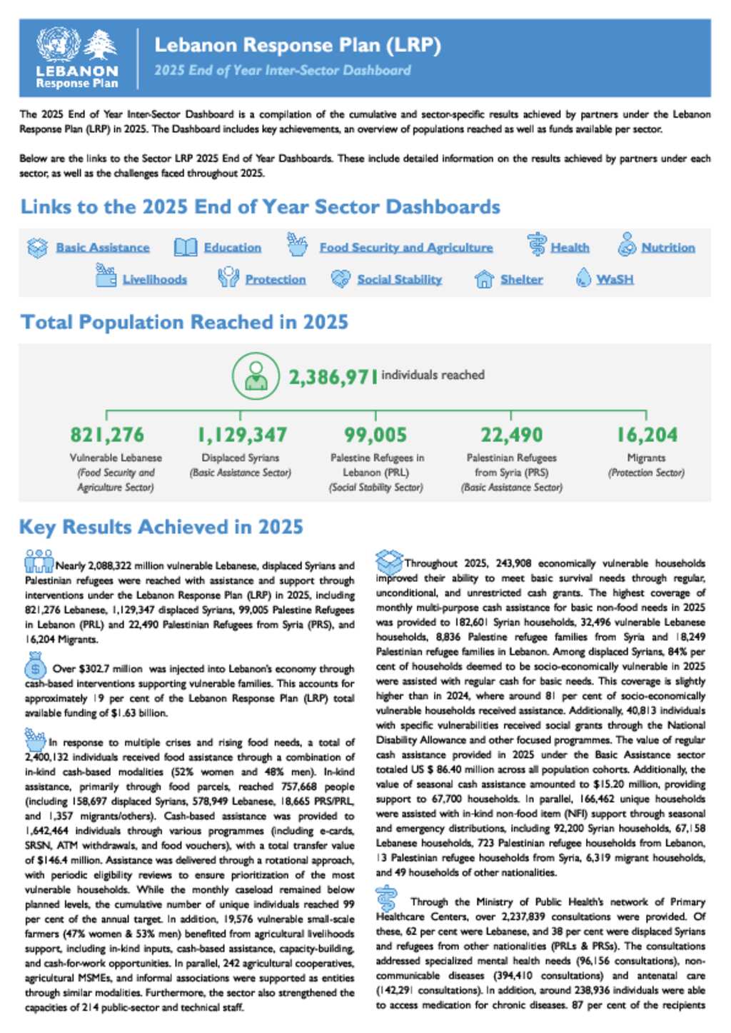 Lebanon Response Plan: Inter-Sector Dashboard - End of Year 2025