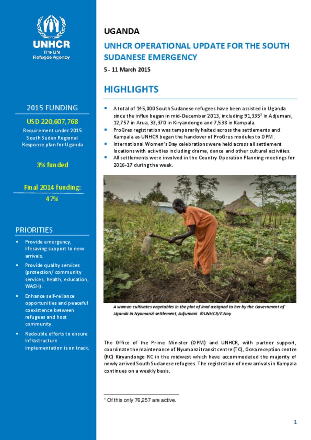 UNHCR UGANDA OPERATIONAL UPDATE FOR THE SOUTH SUDANESE EMERGENCY 5-11 MARCH