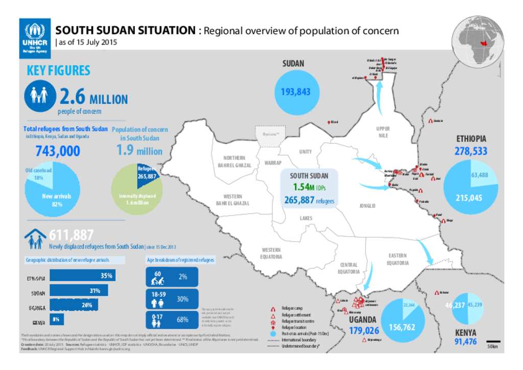 South Sudan Situation - Regional overview of population of concern, 15 July 2015