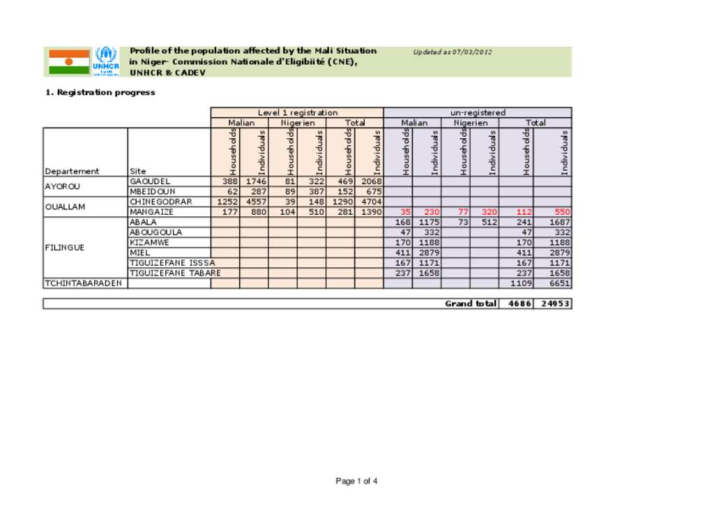 Profile de la population enregistrées_Niger_07_03_2012