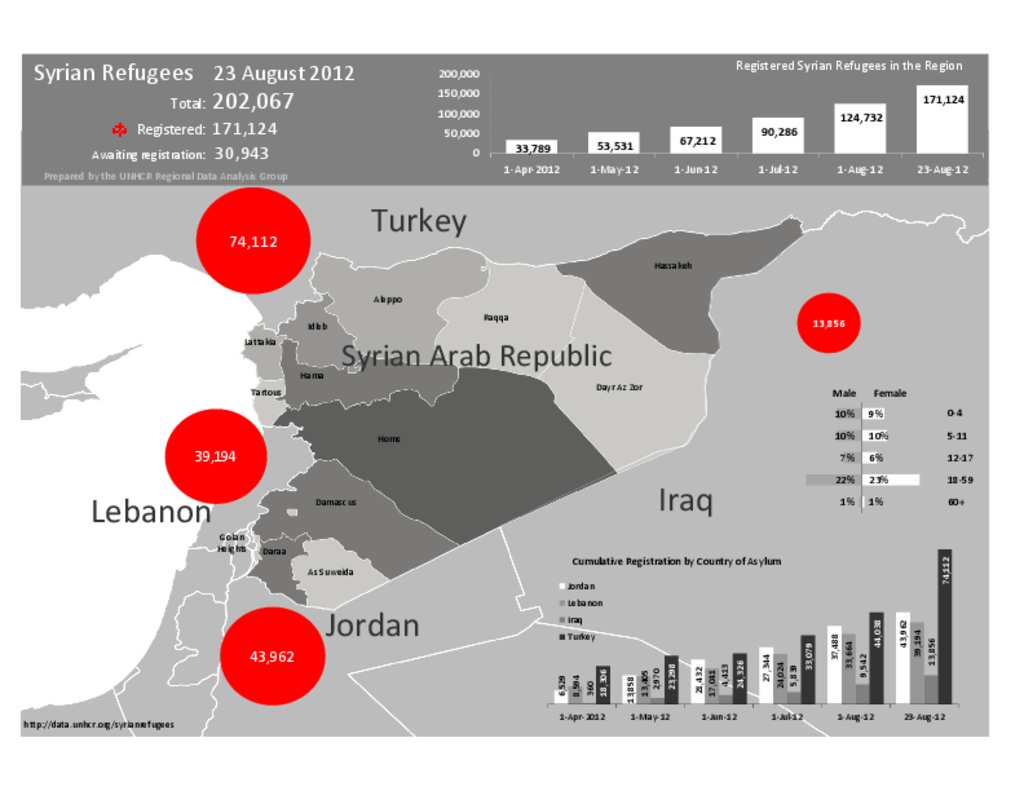 Syrian Refugees - Regional Overview Map and Stats - 23 August 2012