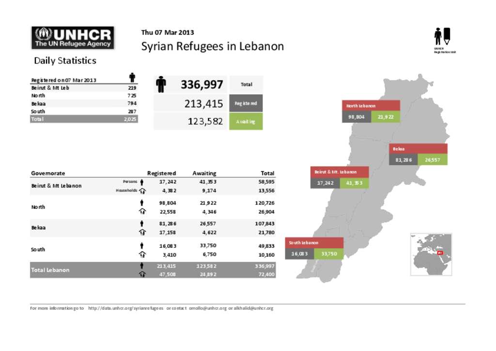 Lebanon Registration Daily Stats 07 March 2013