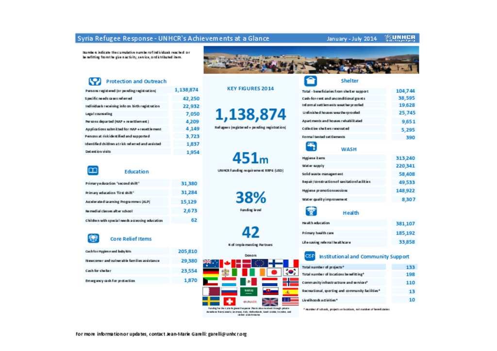 UNHCR - Lebanon - Achievements at glance UNHCR Monthly Update - July 2014