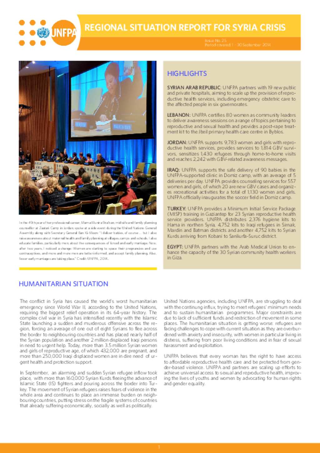 UNFPA Regional SitRep 1 - 30 September 2014 # 25