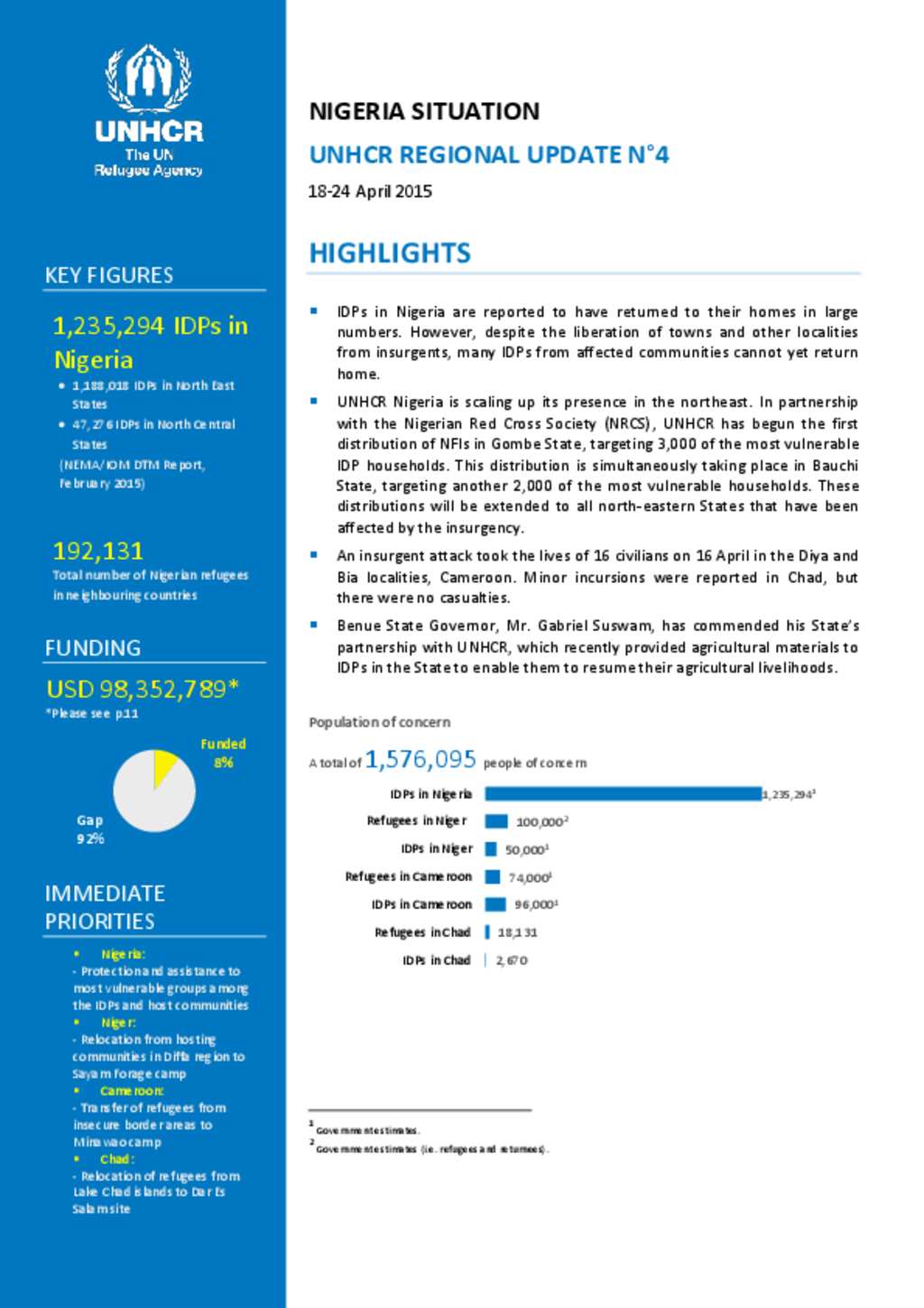 UNHCR Regional Update - Nigeria Situation #4 (24 April 2015)