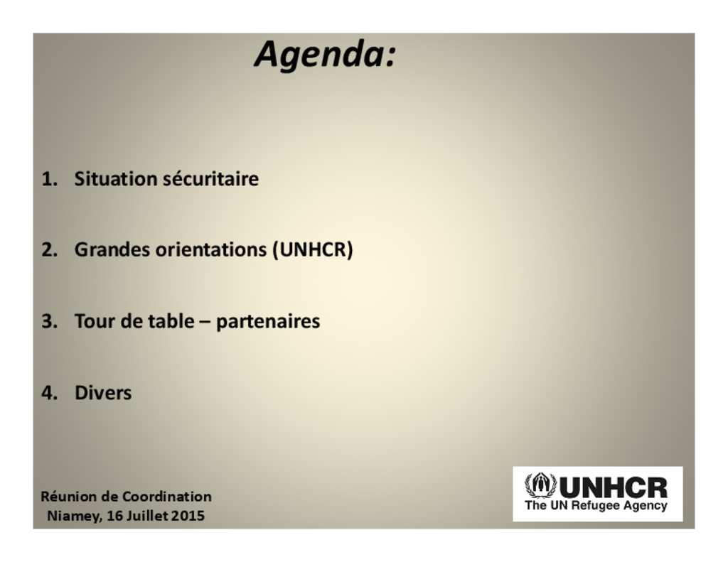 UNHCR Niger: reunion de coordination de la situation Malienne
