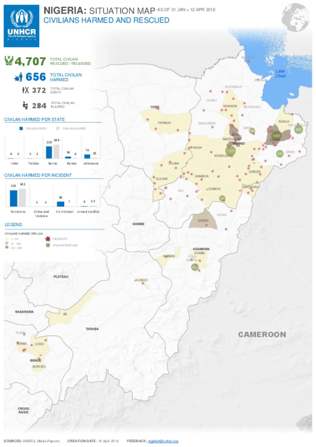 Nigeria Situation Map (as of 01 Jan - 12 Apr 2016)