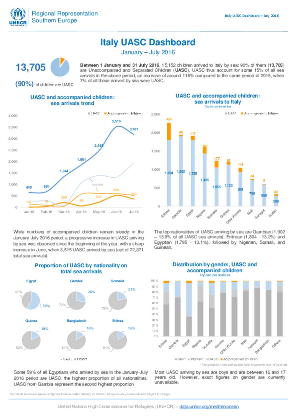 Italy - UASC Monthly Dashboard - Jan to July 2016