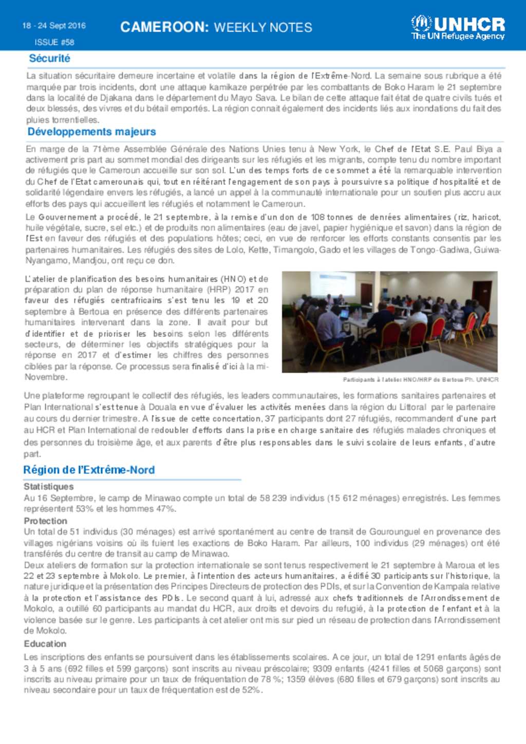 UNHCR Cameroon Weekly Notes 18-24 sept. 2016