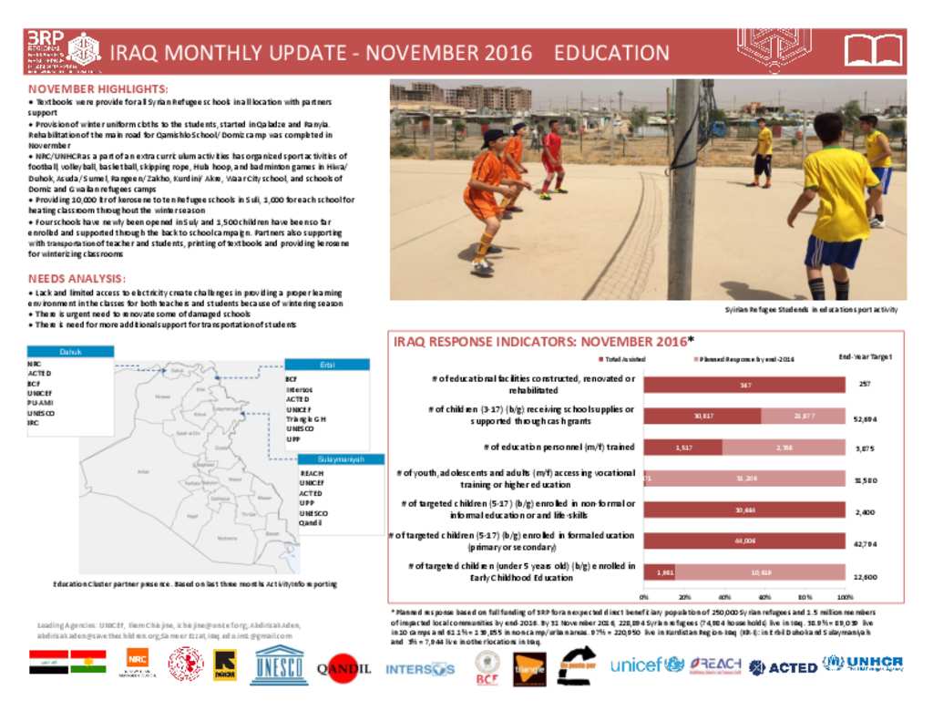 IRAQ 3RP NOVEMBER 2016 EDUCATION Dashboard