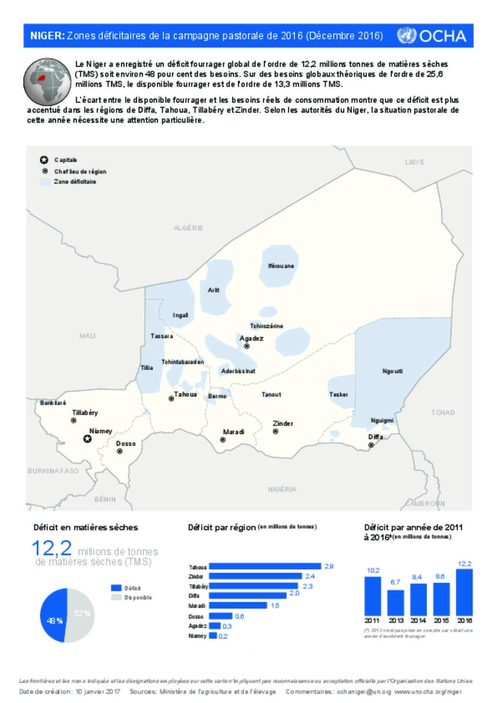 Niger: Zones déficitaires de la campagne pastorale de 2016 (Décembre 2016)
