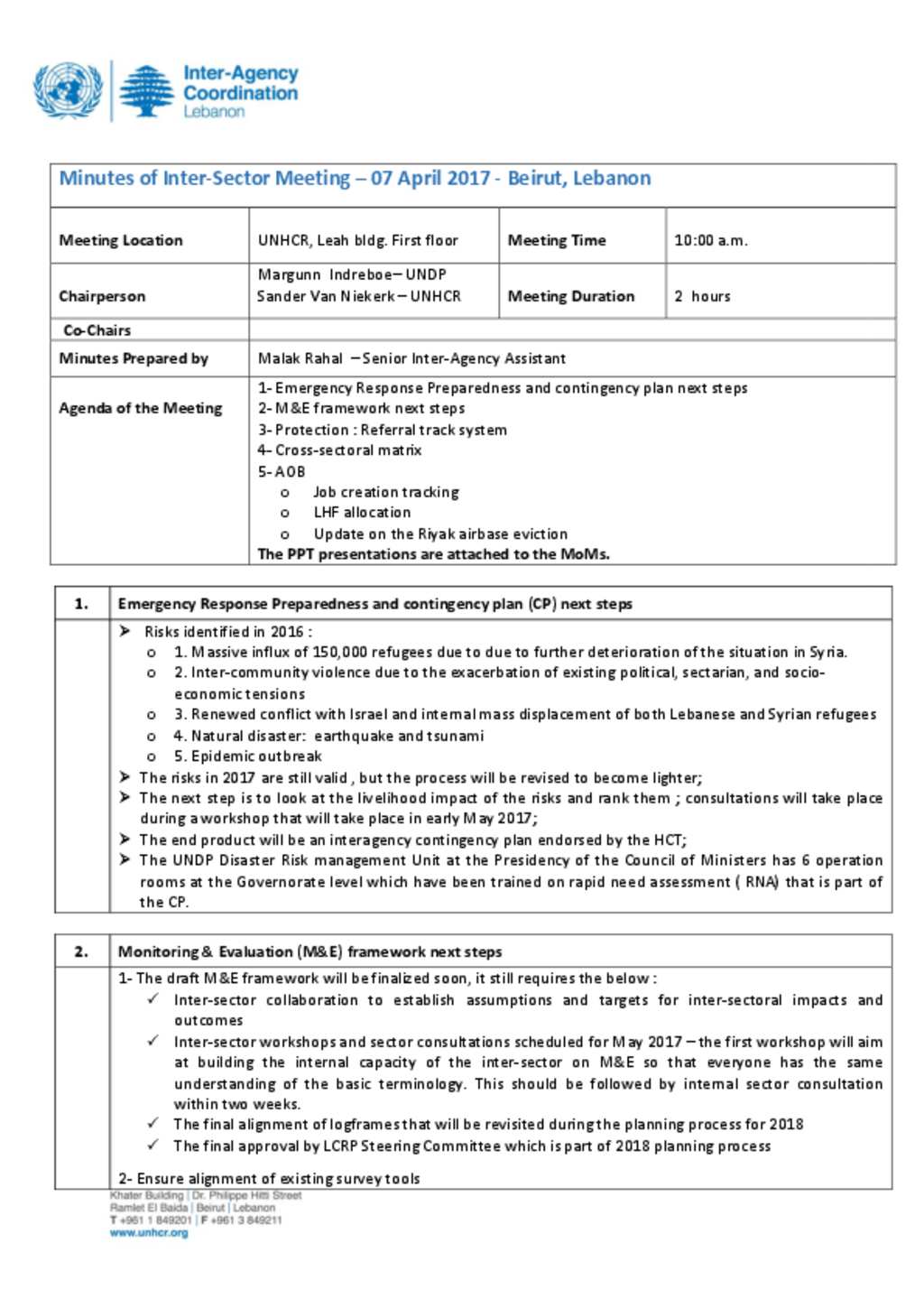 Inter-Sector MoM 7 April, 2017