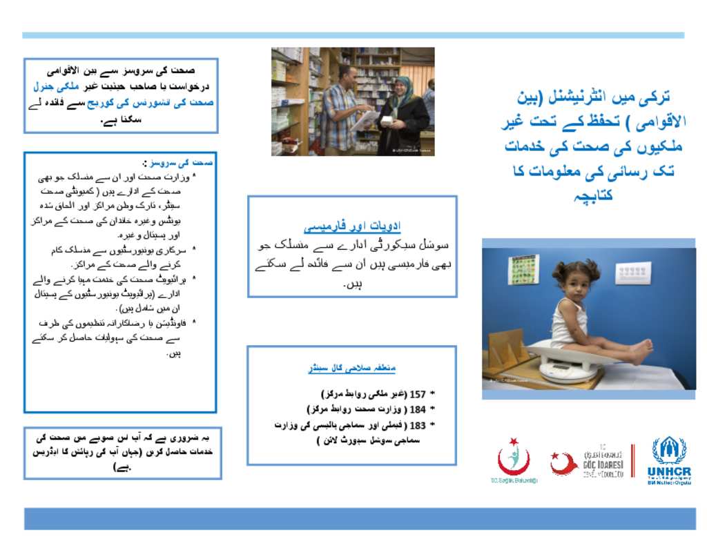 UNHCR : Access to Health care services for Foreigners under International Protection in Turkey_Urdu 2017