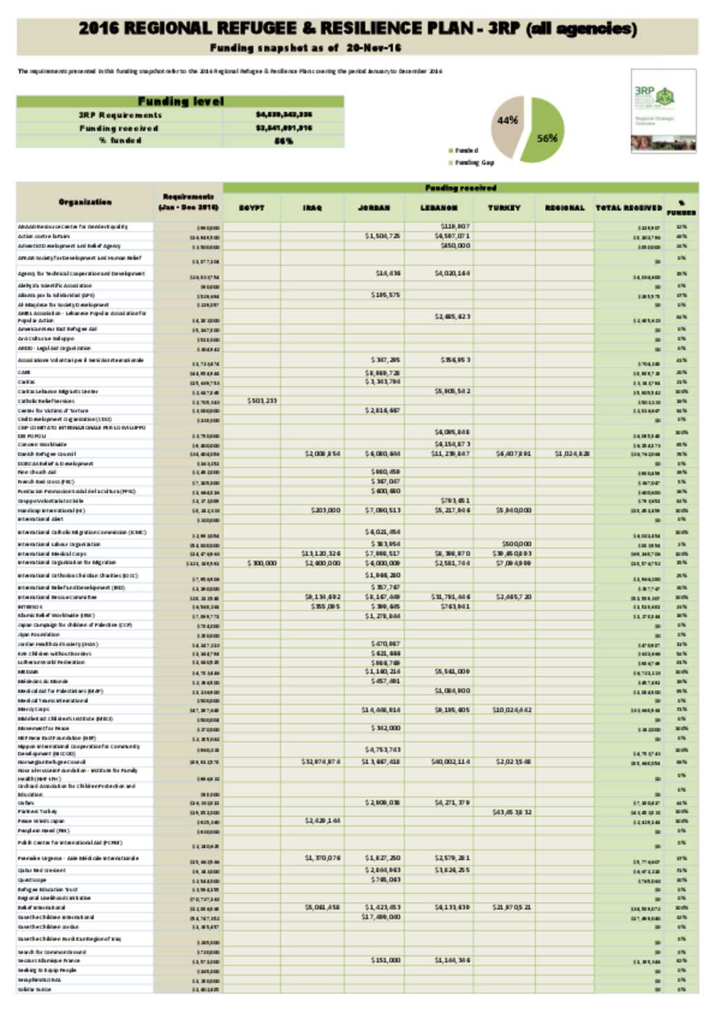 Syria 3RP 2016 - Funding tracking all agencies- November