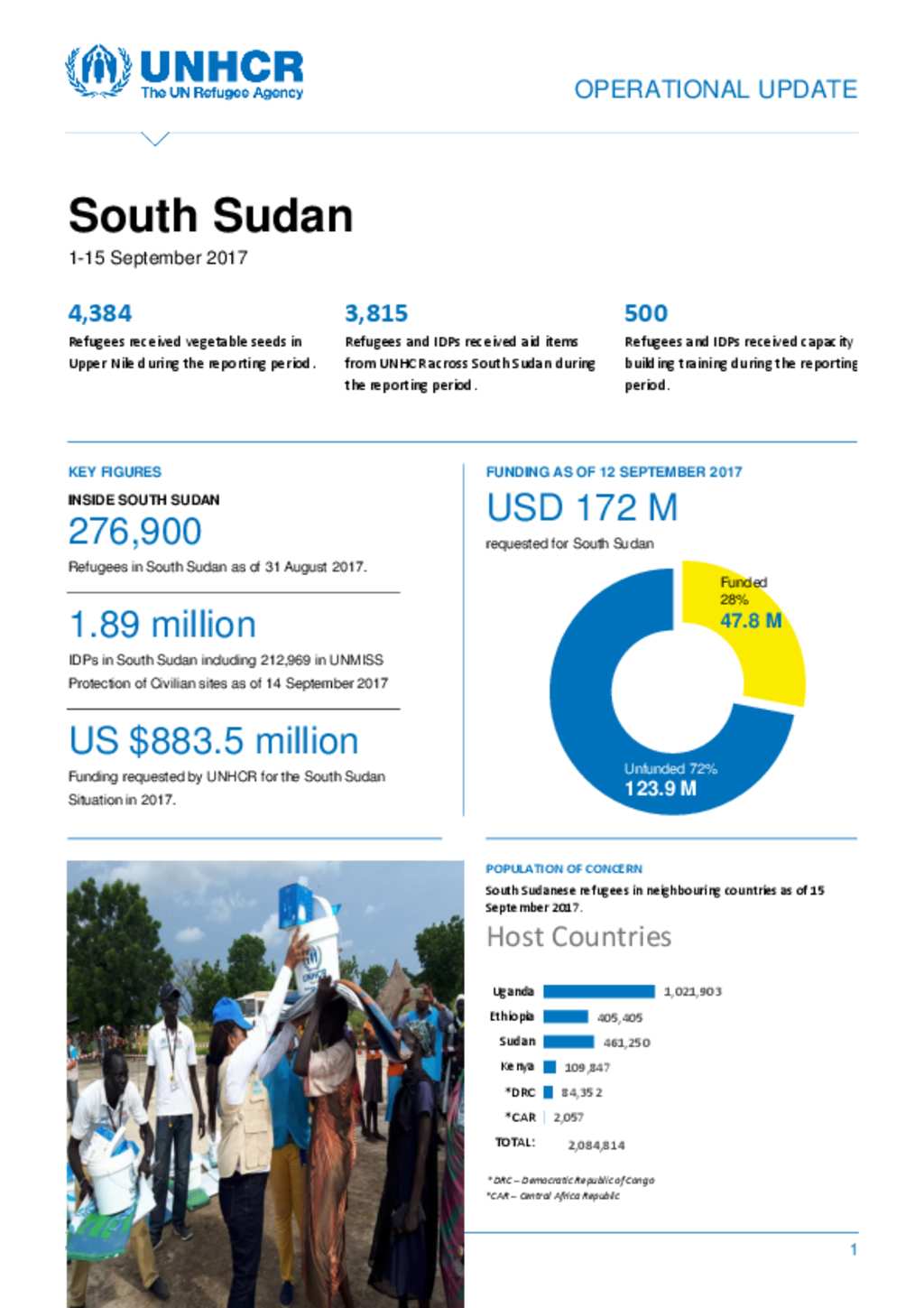 UNHCR SSD Operational Update No 17 - 1-15 September 2017