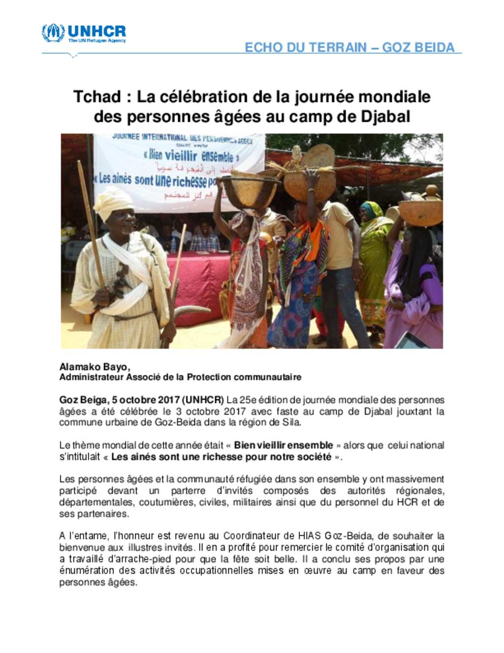 Tchad : La célébration de la journée mondiale des personnes âgées au camp de Djabal