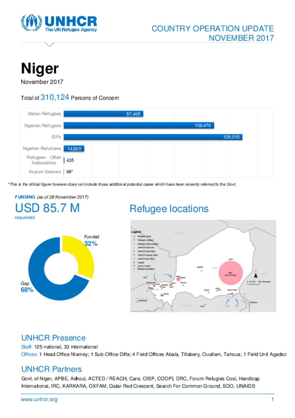 UNHCR Niger: Country Operation Update Novemberr 2017